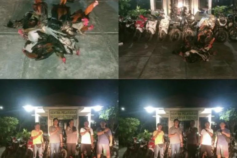 Selanjutnya pada saat dilakukan penggerebekan tersebut para pelaku yang melakukan perjudian sabung ayam sontak seluruhnya kabur kebelakang rumah dan kebun masyarakat sekitar. Meski demikian, petugas berhasil mengamankan barang bukti berupa ayam dan sepeda motor yang di duga milik para pelaku sabung ayam. “Total 10 unit sepeda motor dan 8 ekor ayam Bangkok disita petugas dilapangan,” ucap Kabid Humas saat dikonfirmasi.