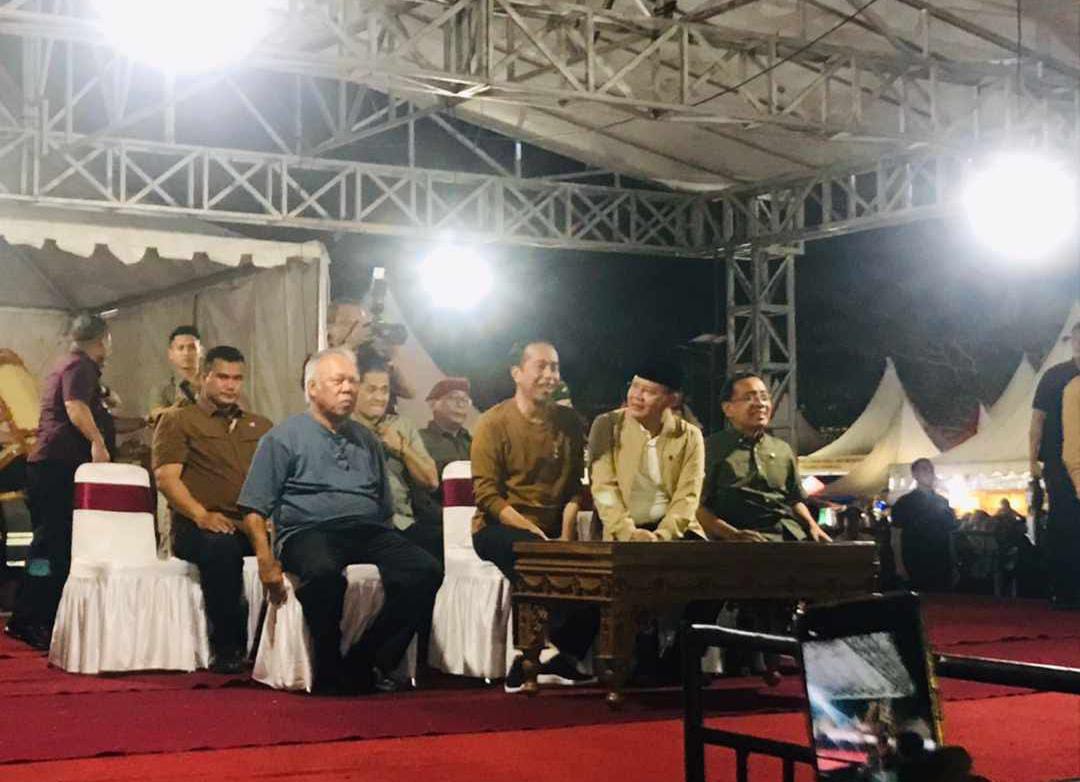 Terlihat jelas keakraban Gubernur Bengkulu Rohidin Mersyah bersama Presiden RI Joko Widodo saat diatas panggung,sambil menyaksikan festival dol pada malam kedua ini .