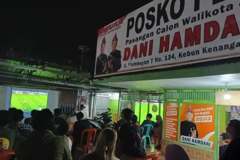 TEROPONGPUBLIK.CO.ID - Pasangan calon walikota dan wakil walikota Bengkulu, Dani Hambani dan Sukatno, menggelar acara Nonton Bareng (Nobar) bersama masyarakat di Sekretariat Pemenangan DISUKA, yang berlokasi di Jalan Flamboyan, Kota Bengkulu. Acara nobar ini menjadi ajang yang meriah, menarik perhatian ratusan warga Bengkulu dari berbagai kalangan, mulai dari orang tua, pemuda, hingga remaja putra dan putri.
