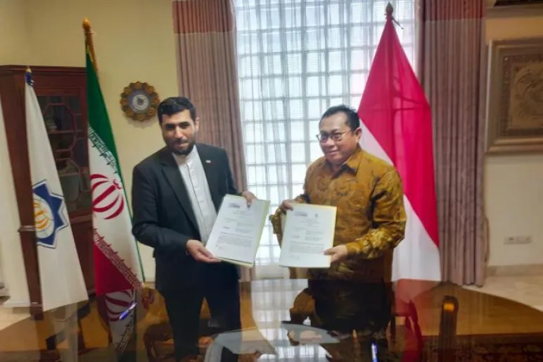 TEROPONGPUBLIK.CO.ID <<>>> Ketua Umum Serikat Media Siber Indonesia (SMSI) Firdaus menandatangani nota kesepahaman (Memorandum of Understanding/MoU) bersama Konselor Kebudayaan Kedutaan Besar Republik Islam Iran Mohammad Reza Ebrahimi. Penandatanganan MoU berlangsung di Kantor Kedutaan Besar Republik Islam Iran Jl. HOS Cokroaminoto No. 110 Menteng, Jakarta, Senin pagi (12/8/2024).