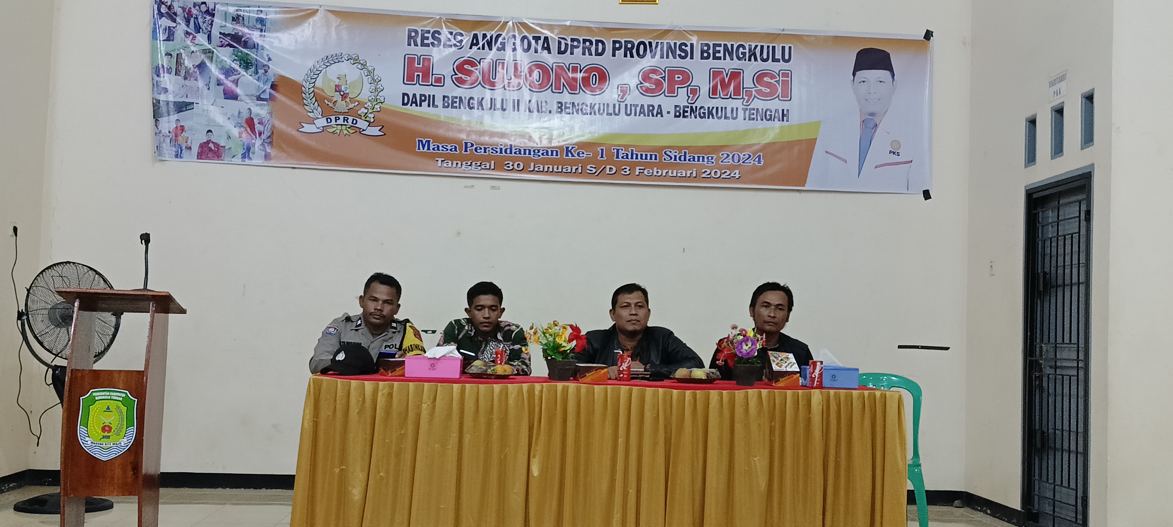 TEROPONGPUBLIK.CO.ID-Anggota DPRD Provinsi Bengkulu, H. Sujono, Sp, M, Si., menjalani masa reses di Dapil Bengkulu II, Kabupaten Bengkulu Utara - Bengkulu Tengah, selama Masa Persidangan I Tahun Sidang 2024 di Desa Pekik Nyaring, Kecamatan Pondok Kelapa, pada Jumat (2/2).