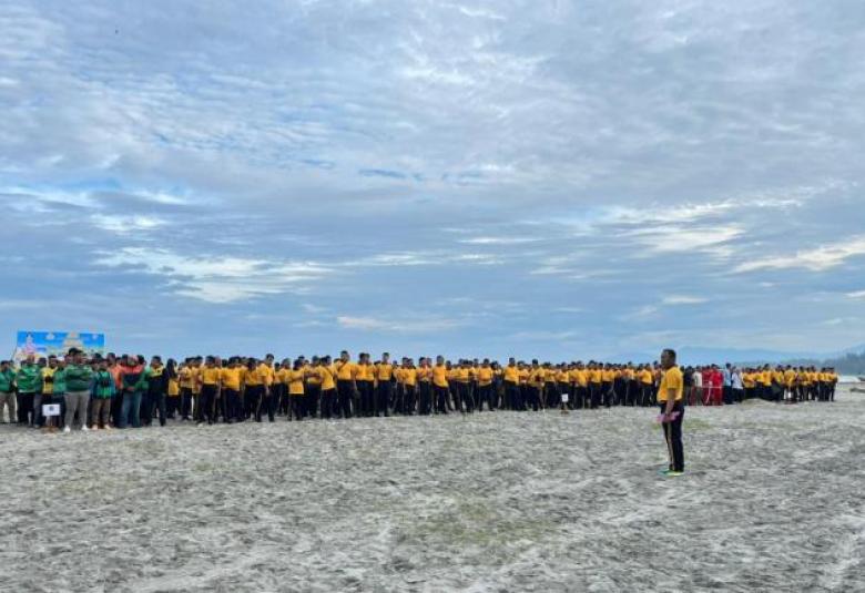 Polda Bengkulu Gelar GEMPAR di Pantai Zakat, Ajak Warga Jaga Kebersihan Lingkungan Wisata