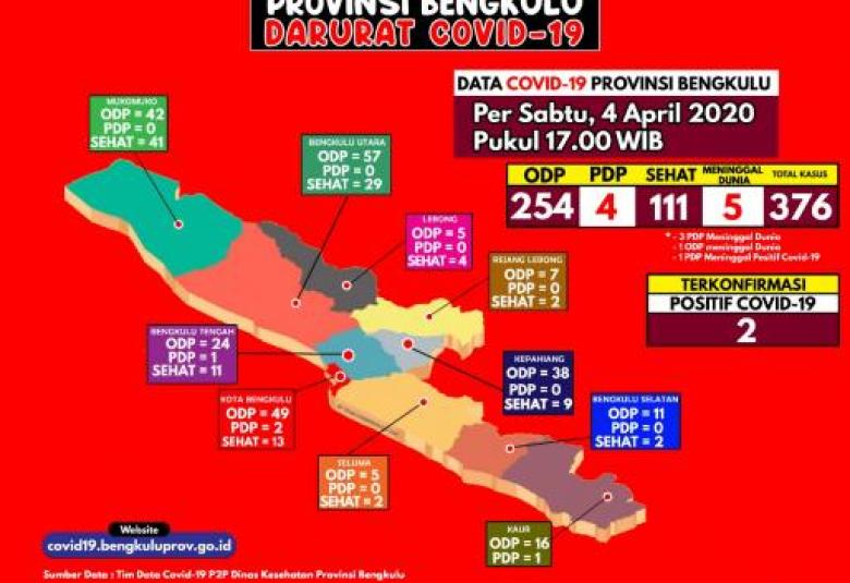 BENGKULU.TEROPONGPUBLIK.COM-Dinas Kesehatan Provinsi Bengkulu kembali merilis data update perkembangan kasus Covid-19