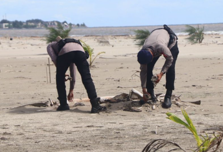 Polisi Bersihkan Pantai Konservasi Penyu di Bengkulu Tengah, Dukung Kelestarian Ekosistem Pesisir