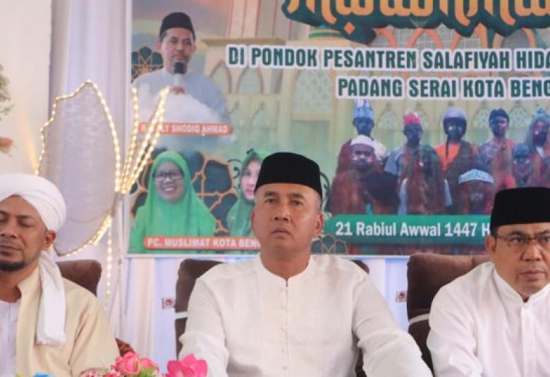 Kapolda Bengkulu Hadiri Pengajian Akbar Maulid Nabi Muhammad SAW di Pesantren Salafiyah Hidayatul Qomariyah