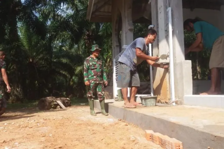 KOTA BENGKULU.TEROPONGPUBLIK.COM - Hingga saat ini sasaran rehab Masjid Babul Jannah di rt 16 Kelurahan Padang Serai kecamatan Kampung Melayu Kota Bengkulu yang dikerjakan oleh TNI dan warga di TMMD Reguler ke -105Kodim Bengkulu tinggal finishing . Yakni seperti pengecetan dan pembersihan-pembersihan bekas material yang digunakan.Kamis 18/7/2019.