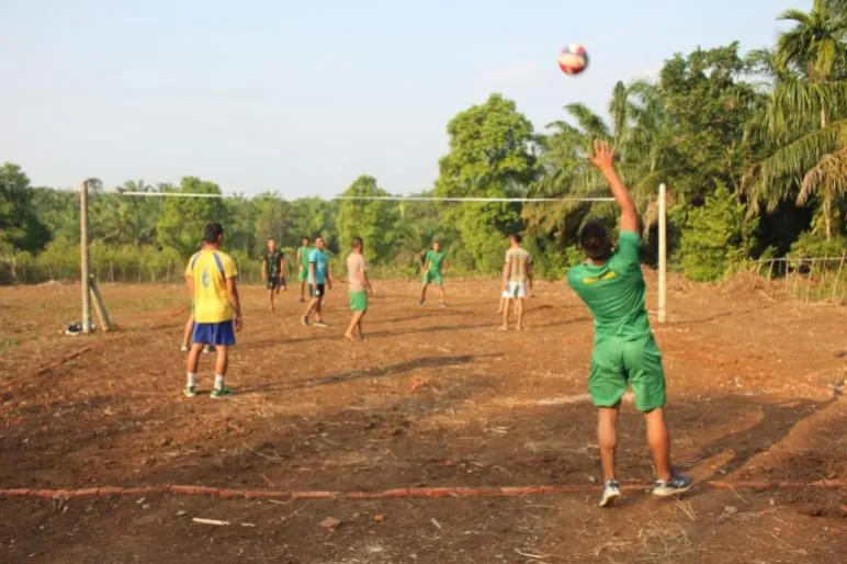 Untuk mengurangi rasa jenuh dengan aktivitas yang monoton, maka beberapa prajurit Satgas TMMD reguler, khsususnya prajurit dari kodim 0407 mengajak warga, pemuda serta karang taruna di kelurahan ersebut melaksanakan olahraga bersama, yaitu voli.