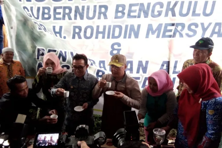 Tidak hanya berbaur dengan masyarakat dan Petani Kopi, Gubernur Bengkulu juga melakukan penyerahan alat perkebunan dan pertanian. Hal ini dimaksudkan agar kedepan dapat membantu produksi perkebunan khususnya produksi Kopi.