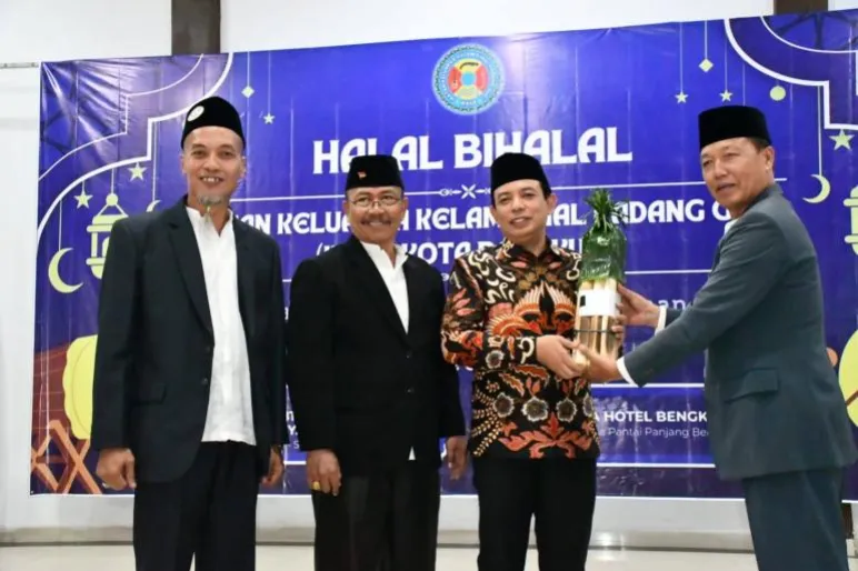 TEROPONGPUBLIK.CO.ID <<<>> Wali Kota Bengkulu, Dedy Wahyudi, menghadiri acara Halal Bihalal Ikatan Keluarga Kelam Kinal Padang Guci (IKKKP) Kota Bengkulu, yang mengangkat tema "Bangun dan Pupuk Persaudaraan (Ukhuwah) Antar Warga, Sangi Keruani, Sangi Kelaghai'i." Kegiatan tersebut berlangsung di Hotel Adeeva, Kota Bengkulu, pada Sabtu (26/4/2025).