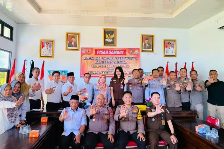 TEROPONGPUBLIK.CO.ID <<<>>> Gedung UPP Satgas Saber Pungli Kabupaten Seluma menjadi saksi berlangsungnya acara pisah sambut Ketua UPP Satgas Saber Pungli Kabupaten Seluma dari Kompol. Tatar Insan, SH kepada Kompol. Fakhrul Ikhwan, S.Hp. Acara yang diadakan pada Rabu ini dihadiri oleh berbagai pejabat penting dan tokoh masyarakat.