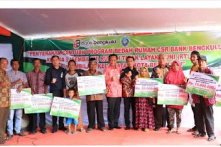 BENGKULU, TEROPONGPUBLIK, COM - Wakil Walikota Bengkulu Dedy Wahyudi menyerahkan bantuan program bedah rumah. Bantuan ini merupakan Corporate Social Responsbility (CSR) Bank Bengkulu. CSR ini dalam bentuk bantuan kepada sembilan rumah tidak layak huni (RTLH) di 9 Kecamatan Kota Bengkulu. Seremoni ini berlangsung pada Rabu (16/1) di kawasan Lempuing Kecamatan Ratu Agung.