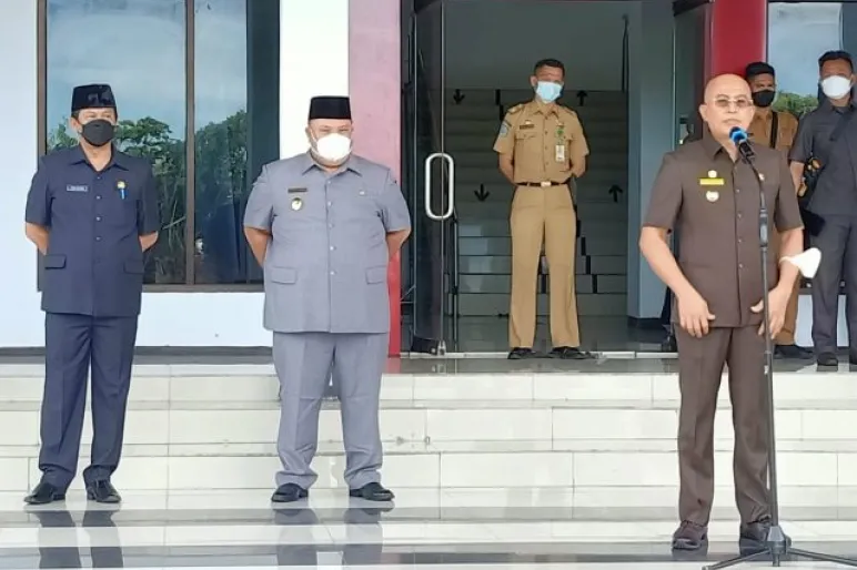 BENGKULUSELATAN.TEROPONGPUBLIK.CO.ID>><< Memasuki hari keja pertama setelah dilantik pada Jumat 26 Februari lalu Bupati Bengkulu Selatan memimpin apel pagi perdana bersama pejabat eslon II dan eslon III di halaman kantor Bupati Senin,(1/3/2021).