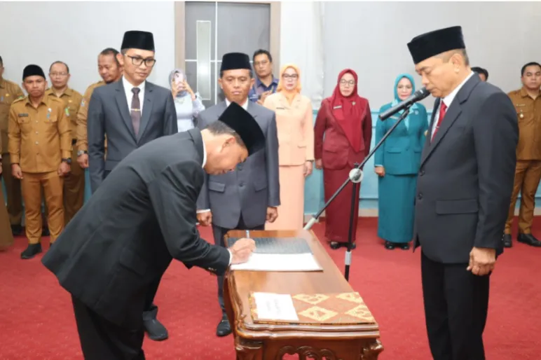 TEROPONGPUBLIK.CO.ID <<<>>> Bupati Bengkulu Tengah, Rachmat Riyanto, secara resmi mengambil sumpah dan melantik Ayatul Mukhtadin, S.H., sebagai Asisten Pemerintahan dan Kesejahteraan Rakyat (Kesra) pada Sekretariat Daerah Kabupaten Bengkulu Tengah. Prosesi pelantikan berlangsung dengan penuh khidmat di Ruang Rapat Bupati dan dihadiri jajaran pejabat daerah serta unsur organisasi perempuan di lingkungan pemerintah kabupaten.