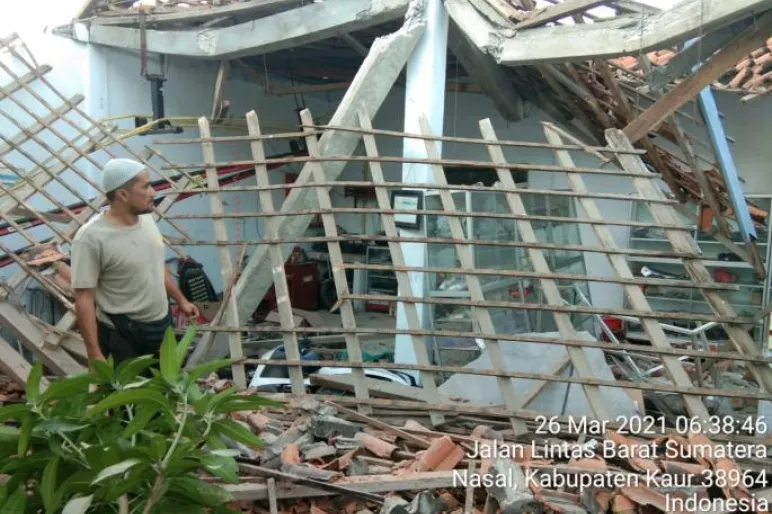KAUR.TEROPONGPUBLIK.CO.ID>><< Tronton yang dikemudikan Agus Wibowo(32) warga Klingan Sidomulyo kecamatan Limpung - Batang Jawa Tengah dan kernet Riyan Trialdiyanto yang merupakan warga daerah yang sama dengan supir menabrak bengkel motor milik purnawirawan Holidin hingga hancur, rusak parah.