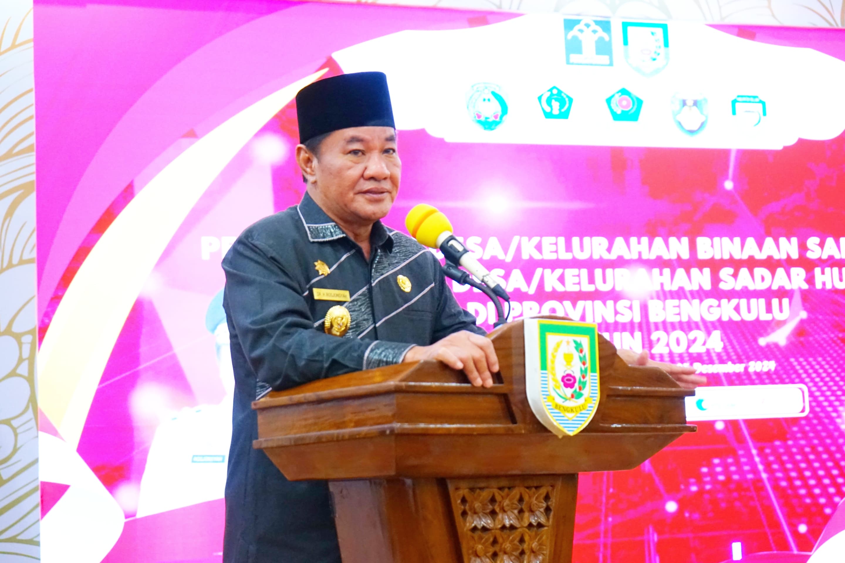 Plt. Gubernur Bengkulu, Rosjonsyah, turut hadir dan menyampaikan pentingnya penguatan kesadaran hukum di tingkat masyarakat. Ia menegaskan, kemampuan desa dan kelurahan dalam memahami dan mengelola isu hukum menjadi modal penting untuk menciptakan lingkungan yang tertib dan kondusif.