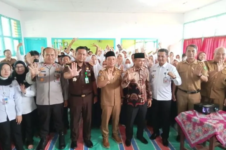 KOTA BENGKULU.TEROPONGPUBLIK CO.ID >><< Walikota Bengkulu Dedy Wahyudi hadiri deklarasi sekolah Bersih dari Narkoba (Beesinar) di SMP Negeri 04, Senin (24/10/2022). Juga hadir Ketua DPRD Supriyanto, Kepala BNNK AKBP Alexander, Wakapolres Bengkulu, Kasi Intel Kejari, Kadis Diknas, kepala sekolah, dewan guru dan seluruh siswa SMP Negeri 04.