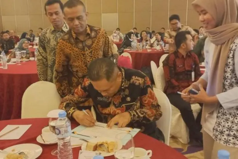 Sekretaris Daerah Bengkulu Tengah, Drs. Rachmat Riyanto, S.T., M.AP., bersama Kepala BKPSDM Apileslipi, S.Kom, M.Si., telah menandatangani komitmen untuk memanfaatkan aplikasi E-Kinerja Badan Kepegawaian Negara (BKN) dalam pengelolaan kinerja Pegawai Aparatur Sipil Negara. Mereka juga mengikuti Focus Group Discussion (FGD) ini, menunjukkan dukungan kuat dari pihak-pihak terkait.