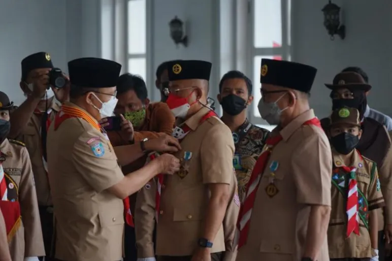 BENGKULU SELATAN.TEROPONGPUBLIK.CO.ID-Bupati BS, Gusnan Mulyadi, yang juga menjabat sebagai Ketua Majelis Pembimbing Cabang Gerakan Pramuka BS, serta Ketua Kwarcab GP Pramuka BS, Nurmalena Gusnan, dianugerahkan Tanda Penghargaan Lencana Darma Bakti yang diberikan oleh ketua Kwartir Nasional Gerakan Pramuka, Komjen Pol (Purn) Drs Budi Waseso.