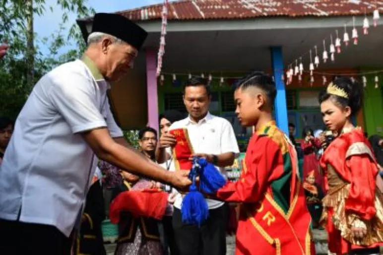 TEROPONGPUBLIK.CO.ID >><< Bupati Rejang Lebong, Drs.H. Syamsul Effendi, MM, mengukuhkan korp drumband Pokoa Gading di SDN 34 Desa Pungguk Lalang pada Kamis, 7 Desember pukul 08.30 WIB. Acara pengukuhan tersebut menjadi momen bersejarah dengan penyematan selempang dan stik kepada tiga pengurus korp drumband, Ifran Mahdim Ramadan sebagai mayor, Ajeng Padila Putri, dan Shaqila Fitri Nur Wahid sebagai mayorete.