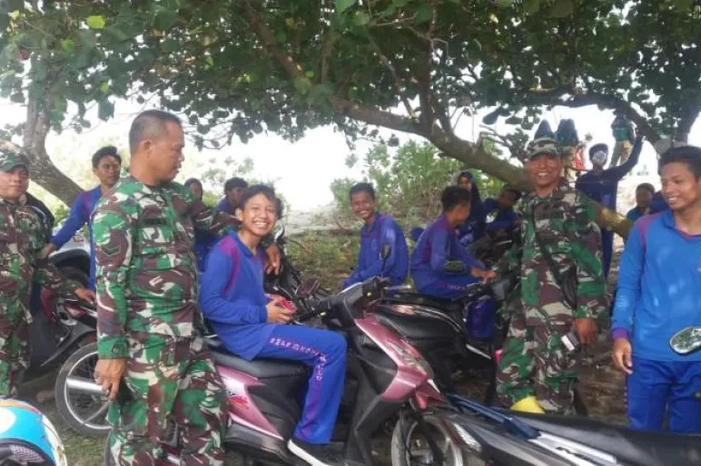Serda Jhon Apriadi, anggota Satgas TNI Manunggal Membangun Desa (TMMD) ke-105 Kodim 0407/Bengkulu, memberikan motivasi semangat belajar kepada Siswa-siswi Smk 15 Tarunadan Sltpn Padang serai. Sertu Aan Prada memberikan arahan tentang bagaimana pentingnya pendidikan.