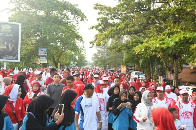 Usai doa bersama, ribuan peserta kemudian mengikuti jalan sehat dengan rute mengitari kawasan Sport Center hingga Taman Berkas, lalu kembali lagi ke titik awal di Sport Center. Sepanjang perjalanan, suasana kebersamaan begitu terasa, ditandai dengan antusiasme peserta yang kompak mengenakan atribut merah putih, membawa bendera kecil, hingga menyanyikan yel-yel semangat kebangsaan.