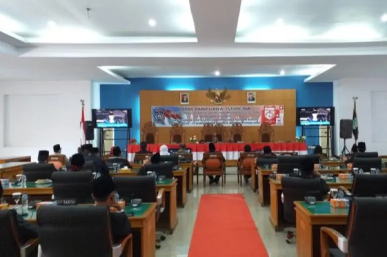 BENGKULU UTARA.TEROPONG PUBLIK. CO.ID – Pimpinan daerah dan DPRD Kabupaten Bengkulu Utara mendengarkan Sidang Tahunan MPR RI Tahun 2020 dan mendengarkan pidato kenegaraan Presiden Republik Indonesia, Joko Widodo melalui siaran televisi, dalam Rapat Paripurna di lantai dua DPRD, Jumat, (14/08/2020).