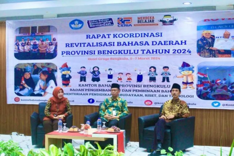 TEROPONGPUBLIK.CO.ID <<<>>> Asisten III Setda Provinsi Bengkulu, Nandar Munadi, menggelar Rapat Koordinasi (Rakor) Revitalisasi Bahasa Daerah Provinsi Bengkulu Tahun 2024 di Hotel Grage Bengkulu. Acara tersebut mendapat dukungan penuh dari Anggota DPRD Provinsi Bengkulu, Sumardi, sebagai langkah penting dalam melestarikan dan memperkaya bahasa daerah di tengah arus globalisasi.