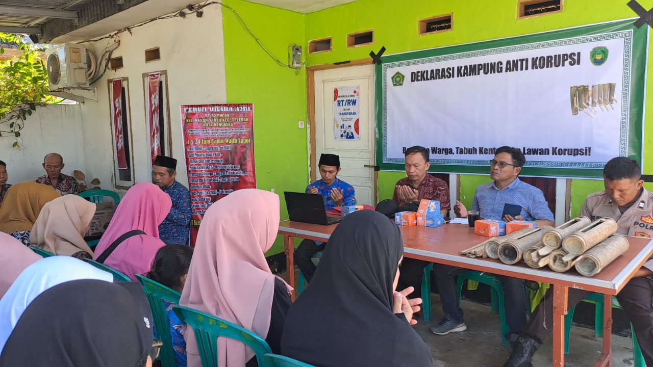 TEROPONGPUBLIK.CO.ID -Pekan Sabtu, 9 Desember 2023 Kampung Antikorupsi RT 30 RW 09 Kelurahan Pekan Sabtu, Kecamatan Selebar, bertepatan hari anti korupsi sedunia, menjadi saksi lahirnya gerakan moral berbasis warga yang dikemas secara unik dan simbolik. Dipelopori oleh Fatkur Rohman, M.Pd.I., seorang penyuluh agama yang juga menjabat Ketua RT, kampanye antikorupsi kini tidak lagi sebatas ceramah dan slogan, melainkan diwujudkan dalam tindakan nyata lewat program Deklarasi Kampung Anti Korupsi dengan peluncuran GERTAK – Gerakan Kentongan Anti Korupsi Bersama Warga, Tabuh Kentongan Anti Korupsi.