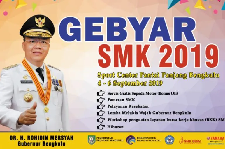 PROVINSI BENGKULU.TEROPONGPUBLIK.COM - Pemerintah Provinsi Bengkulu melalui Dinas Pendidikan bersama forum SMKN se Provinsi Bengkulu menggelar Gebyar SMK Tahun 2019 yang akan dilaksanakan tanggal 4 hingga 6 September 2019 di lapangan Sport Center Pantai Panjang.