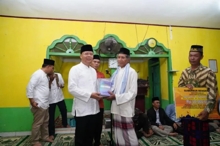 KAUR.TEROPONGPUBLIK.COM -Gubernur Bengkulu Rohidin Mersyah mengapresiasi langkah warga desa pengubaian, dalam semangat memakmurkan masjid atas inisiatif bersama. Hal ini disampaikan, saat shalat isya bersama di Masjid Al Muhajirin Desa pengubaian, Kecamatan Kaur Selatan, Kabupaten Kaur, Jumat(23/8).