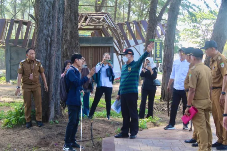 TEROPONGPUBLIK.CO.ID <<<<>>>> Gubernur Rohidin Mersyah dari Provinsi Bengkulu bersama dengan Kadis Pariwisata, Murlin Hanizar, serta sejumlah pejabat daerah, melakukan peninjauan langsung di lokasi pembangunan awning zona 1 di Pantai Panjang.