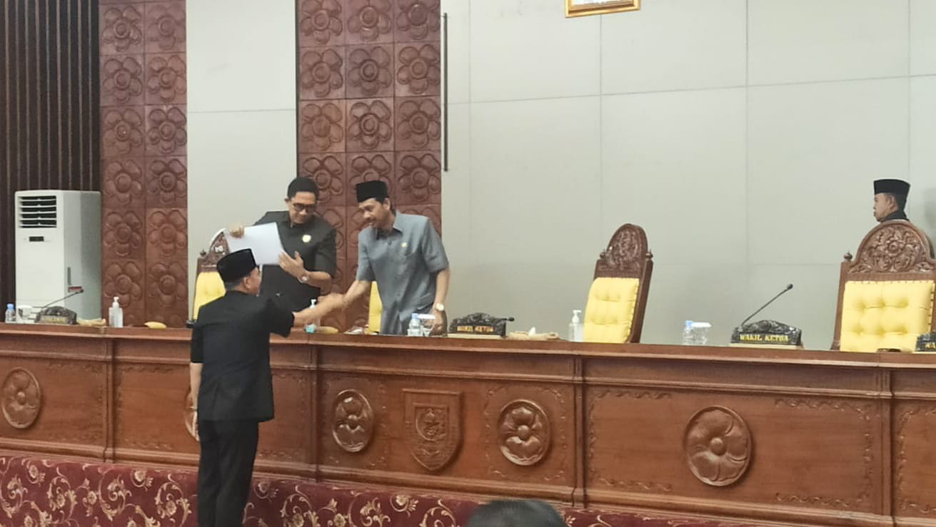 TEROPONGPUBLIK.CO.ID >><< Gubernur Bengkulu Rohidin Mersyah menyampaikan Nota Penjelasan Rancangan Peraturan Daerah (Raperda) Usulan Gubernur Bengkulu atas Raperda tentang Penanaman Modal dan Perizinan Berusaha, pada Rapat Paripurna DPRD Provinsi Bengkulu, di Ruang Rapat Paripurna, Senin (02/10).