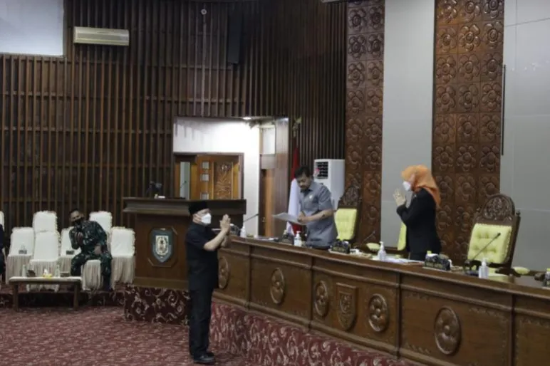 PROVINSI BENGKULU.TEROPONGPUBPIK.CO.ID-Gubernur Bengkulu Rohidin Mersyah menyampaikan Nota Penjelasan Gubernur atas Raperda tentang Pertanggungjawaban Pelaksanaan APBD Provinsi Bengkulu Tahun Anggaran 2020 (Sisa Perhitungan), di Ruang Rapat Paripurna DPRD Provinsi Bengkulu, Selasa (29/6).