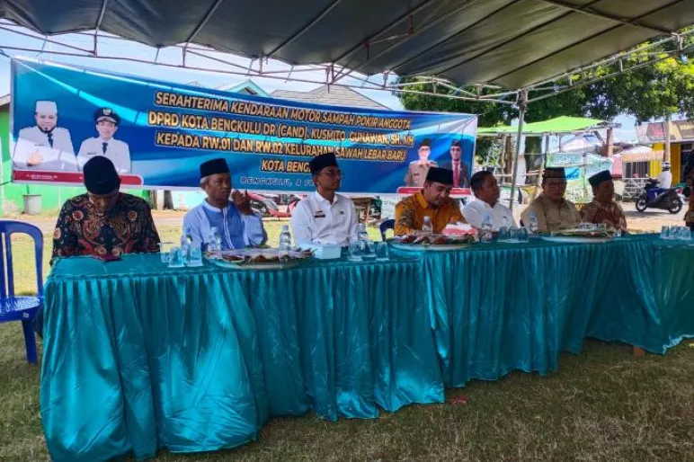 KOTA BENGKULU .TEROPONGPUBLIK.CO.ID>><< Kusmito Gunawan SH.MH DPRD Kota Bengkulu, Anggota komisi I DPRD Kota Bengkulu dan sekaligus Ketua fraksi PAN bersama Dinas Lingkungan Hidup Kota Bengkulu memberikan bantuan motor tiga roda, sebanyak 2 unit untuk angkutan sampah,di RW 01,RW 02 Kelurahan Sawah lebar Baru kecamatan Ratu Agung Kota.Rabu.08/02/2023.