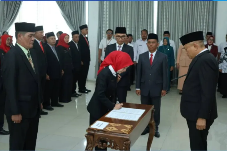 TEROPONGPUBLIK.CO.ID <<<<>>>> Sebanyak 66 pejabat di lingkungan Pemerintah Kabupaten Bengkulu Tengah resmi dilantik dan diambil sumpahnya dalam sebuah prosesi yang berlangsung khidmat di Pendopo Bukit Kandis, Rabu (18/2/2025). Momentum ini menjadi bagian dari langkah penataan birokrasi sekaligus penguatan kualitas layanan publik di daerah tersebut.