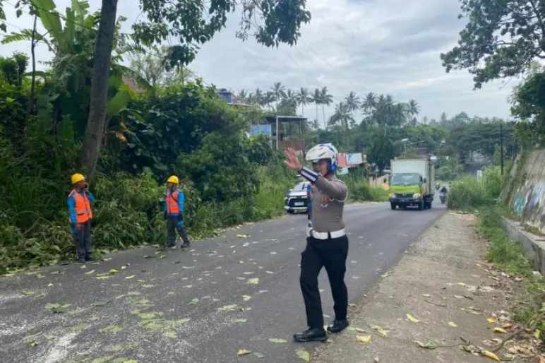 Menurut keterangan di lapangan, pohon tersebut tumbang dari atas tebing karena akarnya tidak mampu menahan tekanan dari angin kencang. Beruntung, tidak ada korban jiwa maupun luka-luka yang dilaporkan dalam kejadian ini. Proses evakuasi berjalan lancar, meski memerlukan waktu sekitar satu jam untuk memotong dan memindahkan batang serta dahan pohon yang cukup besar.