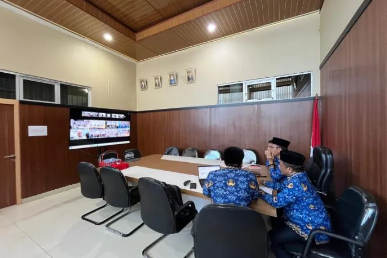 TEROPONGPUBLIK.CO.ID <<<>>> Asisten Administrasi dan Umum Setda Kabupaten Seluma, Riduan Sabrin, ST, mengikuti pertemuan daring (zoom meeting) yang membahas perluasan pilot pengukuran indeks kinerja pengelolaan Barang Milik Daerah (BMD). Pertemuan ini berlangsung di Ruang Rapat Sekretaris Daerah Kabupaten Seluma dan dihadiri oleh Inspektur Kabupaten Seluma serta Kepala Bidang Aset dari Badan Keuangan Daerah.