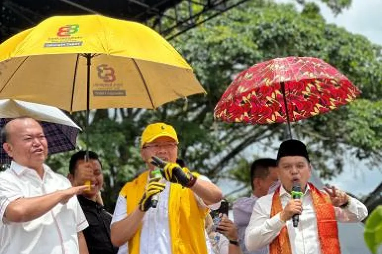 TEROPONGPUBLIK.CO.ID <<<>>> Calon Gubernur Bengkulu nomor urut 2, Rohidin Mersyah, bersama pasangan calon Bupati dan Wakil Bupati Lebong, Azhari - Bambang (ABANGKU), menggelar kampanye akbar di Kelurahan Tes, Kecamatan Lebong Selatan, pada Rabu (20/11).
