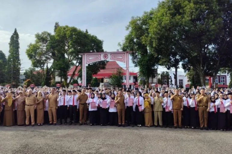 TEROPONGPUBLIK.CO.ID <<<>>> Pemerintah Kabupaten Bengkulu Utara menggelar apel pagi gabungan yang sekaligus menjadi momen penyerahan Surat Keputusan (SK) perpanjangan Pegawai Pemerintah dengan Perjanjian Kerja (PPPK) untuk tahun 2025. Acara tersebut berlangsung di halaman Kantor Bupati Bengkulu Utara pada Selasa pagi, 25 Maret 2025.