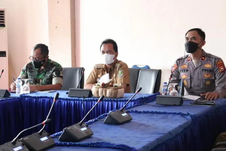 Kabupaten Bengkulu Tengah Video di ikuti oleh Bupati Bengkulu Tengah Dr. H. Ferry Ramli, S.H., M.H. bersama Dandim 0407 Kolonel (Inf) Hendriawan Senjaya, S.E., M.Tr (Han) dan Waka Polres Bengkulu Tengah Kompol Januri Sutirto, S.H.,. berlangsung di Ruang Rapat Bupati (RRB) Kantor Bupati Bengkulu Tengah. Senin (7/2)