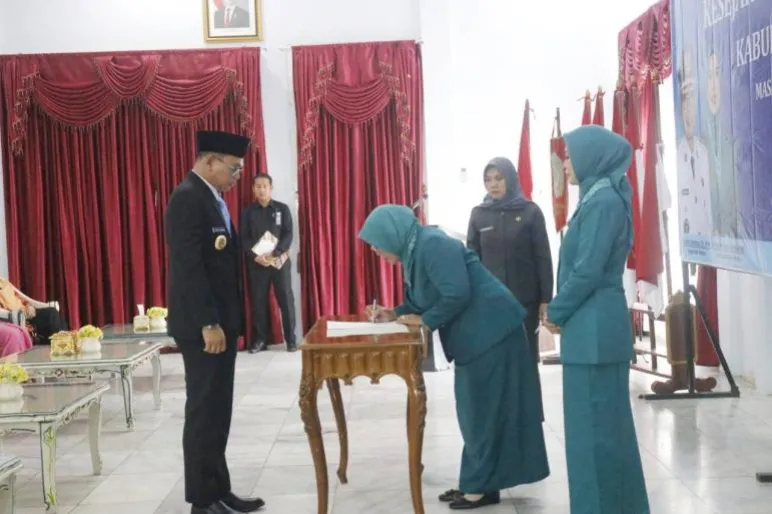 TEROPONGPUBLIK.CO.ID <<<>>> Bupati Seluma, Teddy Rahman, SE, MM, secara resmi mengukuhkan Kepengurusan Tim Penggerak PKK Kabupaten Seluma untuk masa bakti 2025-2030. Acara ini berlangsung pada Kamis, 13 Maret 2025, di Gedung Daerah Serasan Seijoan Seluma.