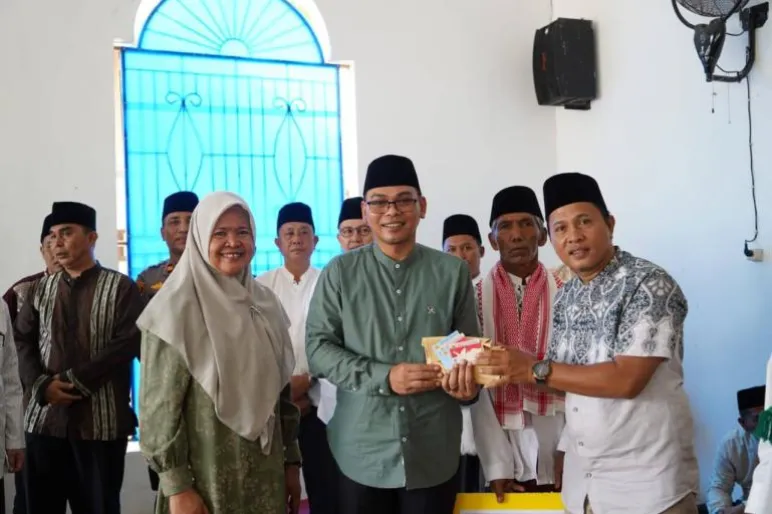 TEROPONGPUBLIK.CO.ID <<<>>> Bupati Seluma, Teddy Rahman, SE, MM, menyerahkan bantuan dana sebesar Rp10 juta untuk pembangunan Masjid Miftahul Huda di Desa Rimbo Kedui, Kecamatan Seluma Selatan. Bantuan tersebut merupakan bentuk dukungan dari Pemerintah Kabupaten Seluma dalam meningkatkan fasilitas ibadah bagi masyarakat. Selain itu, Bupati juga menyalurkan paket sembako dari Badan Amil Zakat Nasional (Baznas) Kabupaten Seluma kepada masyarakat yang membutuhkan. Acara penyerahan bantuan ini berlangsung pada Rabu (27/3/2025) dalam rangkaian kegiatan Safari Ramadan.