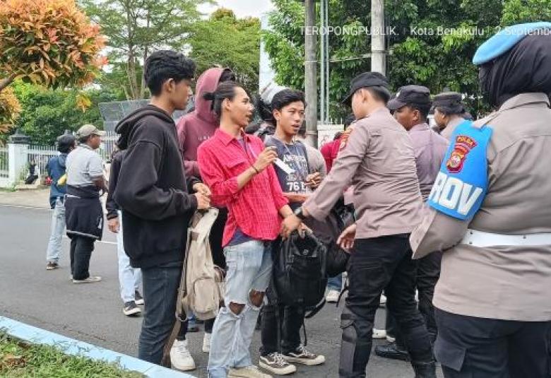 TEROPONGPUBLIK.CO.ID – Aksi demonstrasi mahasiswa yang digelar di depan Gedung DPRD Provinsi Bengkulu berlangsung den