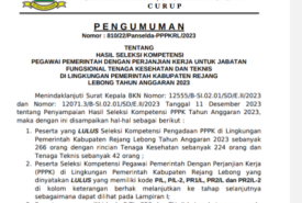 PENGUMUMAN: HASIL SELEKSI TENAGA KESEHATAN DAN TEKNIS PADA PEMERINTAH KABUPATEN REJANG LEBONG TAHUN 2023 TELAH DIRILIS
