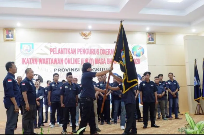 TEROPONGPUBLIK.CO.ID - Pengurus Daerah (PD) Ikatan Wartawan Online (IWO) se-Provinsi Bengkulu masa bakti 2023-2028 resmi dilantik Ketua Umum IWO Pusat, Dwi Christianto, di Gedung Daerah Balai Raya Semarak Bengkulu, Senin (20/11).