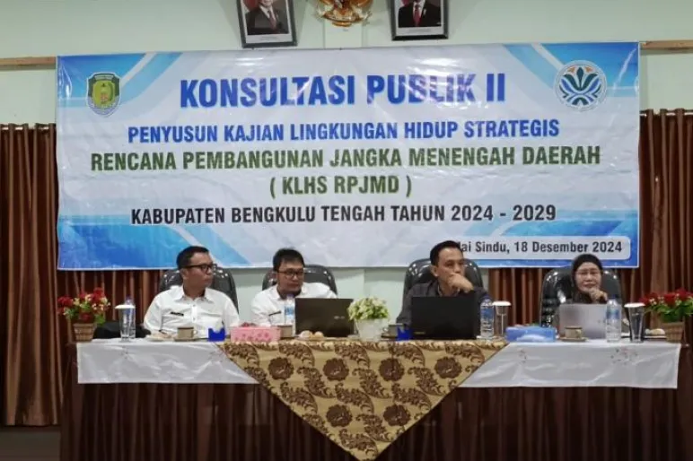 TEROPONGPUBLIK.CO.ID <<<>>>> Dinas Lingkungan Hidup (DLH) Kabupaten Bengkulu Tengah menyelenggarakan sosialisasi dan konsultasi publik terkait penyusunan Kajian Lingkungan Hidup Strategis (KLHS) untuk Rencana Pembangunan Jangka Menengah Daerah (RPJMD) 2025-2029. Acara ini berlangsung di Aula Hotel Sindu, Kabupaten Bengkulu Tengah, pada Rabu (18/12).