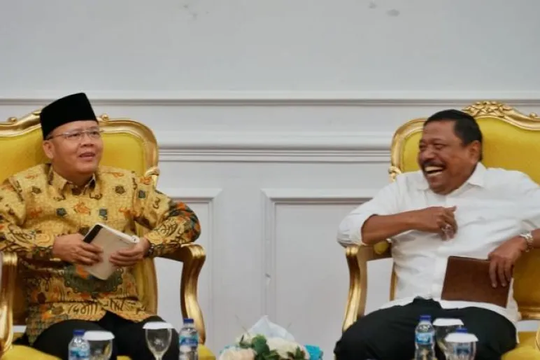BENGKULU.TEROPONGPUBPIK.CO.ID-Gubernur Rohidin Mersyah menerima audiensi Bupati Bengkulu Utara Mian di Balai Raya Semarak Bengkulu, Senin(3/10). Pertemuan membahas sinkronisasi pembangunan infrastruktur di Kabupaten Bengkulu Utara.