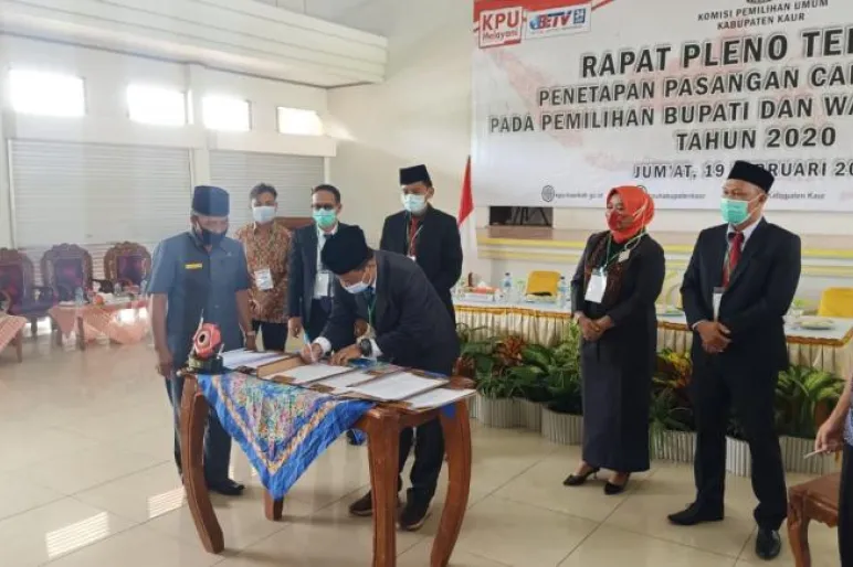 Ketua KPU Kaur, Yuhardi dalam sambutannya mengatakan, penetapan ini sesuai dengan perolehan suara terbanyak dalam pemilihan Bupati dan Wakil Bupati Kaur yang digelar pada 9 Desember 2020 lalu, dimana pada Pilbup dan Pilwabup Kaur, pasangan nomor urut 2 ini meraih kemenangan.