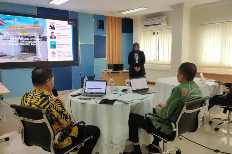 TEROPONGPUBLIK.CO.ID <<<>>> Kepala Dinas Kominfotik Provinsi Bengkulu, Oslita Muslimin, menyampaikan rancangan Proyek Perubahan BEN-CONNECT dalam seminar PKN II Angkatan XVIII Tahun 2024 pada Jumat (3/8) di Pusat Pelatihan Kementerian Kominfo. Oslita memaparkan beberapa isu strategis di hadapan mentor Isnan Fajri, Sekretaris Daerah Provinsi Bengkulu, Coach Machmudan, dan Asisten Deputi Perumusan Kebijakan dan Koordinasi Sistem Pemerintah Berbasis Elektronik, Cahyono Tri Wibowo, yang bertindak sebagai penguji.