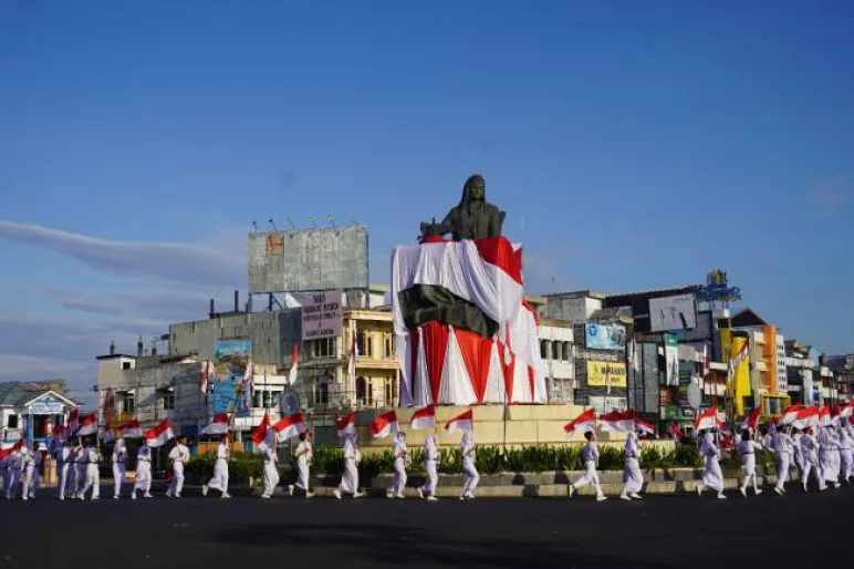 TEROPONGPUBLIK.CO.ID - Dalam rangka memperingati Hari Ulang Tahun (HUT) ke-79 Kemerdekaan Republik Indonesia dan menumbuhkan semangat nasionalisme, Komando Resor Militer (Korem) 041/Gamas menggelar acara Kirab Bendera Merah Putih yang berpusat di Bundaran Patung Ibu Fatmawati, Simpang Lima, Kota Bengkulu, pada Sabtu (10/8/2024).